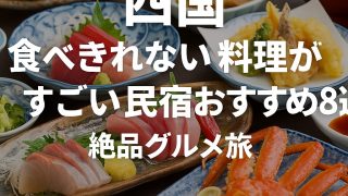四国 【四国】食べきれない料理がすごい民宿おすすめ8選|絶品グルメ旅 四国で「料理がすごい」と口コミ高評価の民宿を厳選。伊勢海老や鮮魚たっぷりの豪華料理とリーズナブルな料金で味わえるおすすめ宿8選をご紹介。 2025.09.24 四国