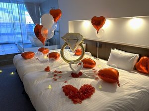 ホテル側が到着前にデコレーションをセッティングしてくれるため、ドアを開けた瞬間にサプライズが完成します。