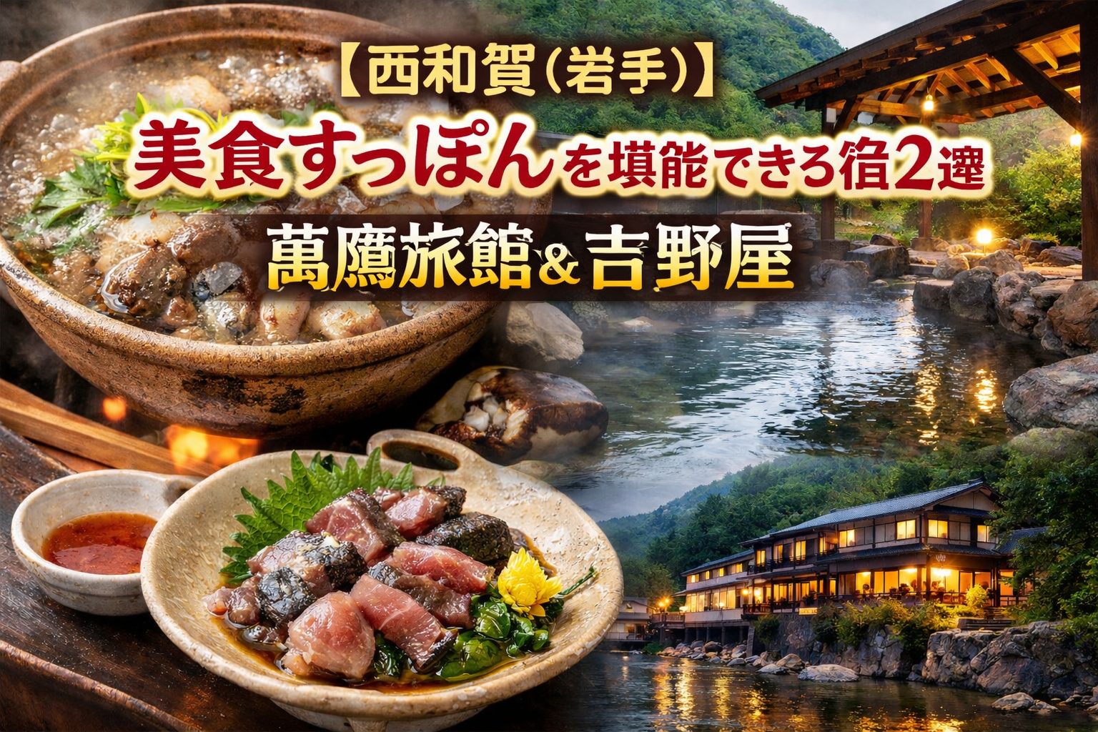 萬鷹旅館の本格フルコースや、吉野屋の選べる創作料理と源泉かけ流し温泉など、他ではなかなか味わえない贅沢がここにあります。
