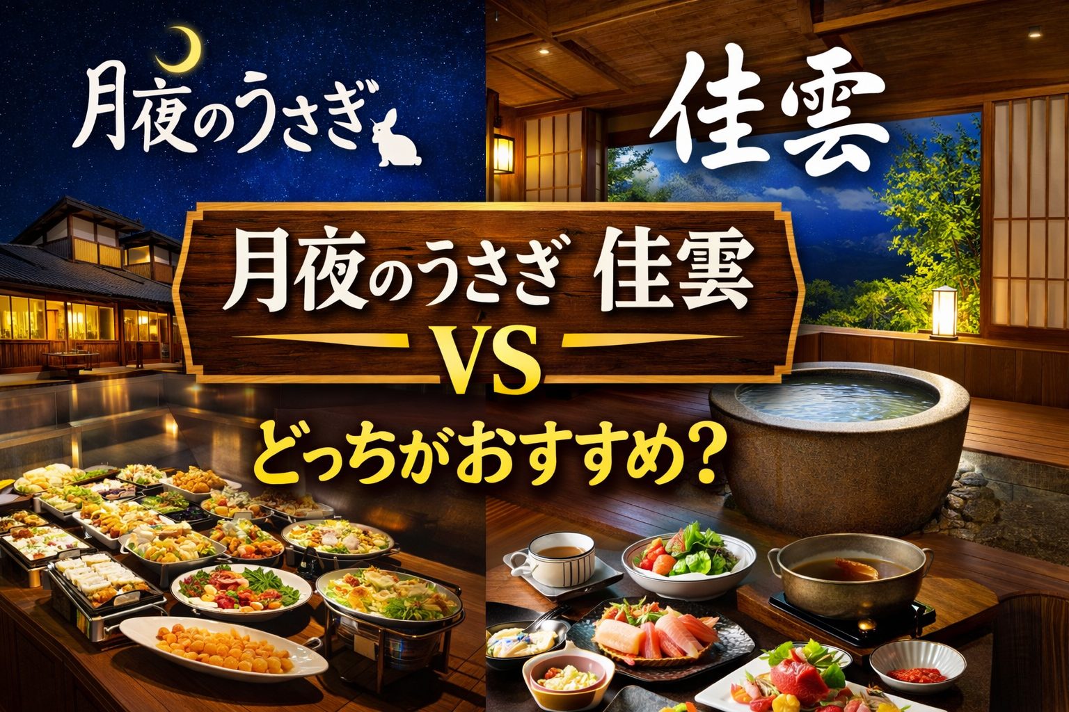 ここまで、月夜のうさぎと佳雲の違いを「客室」「食事」「温泉」「料金」「雰囲気」の視点から比較してきました。